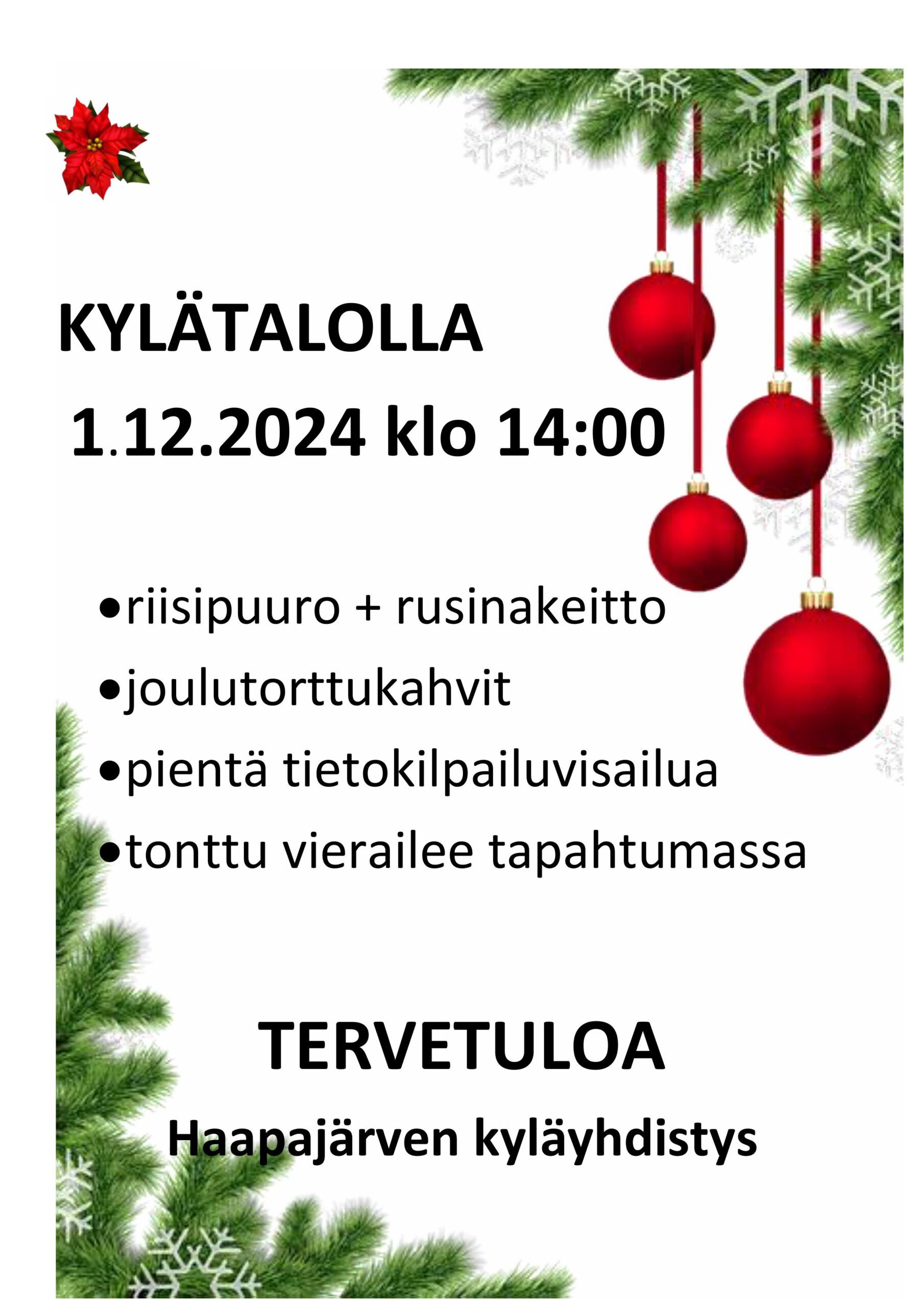 Tervetuloa kyläyhdistyksen kotisivuille. Ota yhteyttä, Reima Koivisto p. 050 505 0491, Pirjo Junnikkala p. 040 764 0649, haapajarvenkyla@gmail.com