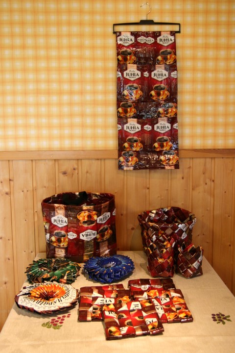 Pipa on loihtinut mm. juomatölkkien nipsuista, kahvipusseista ja vanhoista farkuista jos vaikka mitä itselle ja läheisille. Kaikenlaista uutta pitää kokeilla ja kokeiluversioitahan ne on nämäkin työt… Ja uutta ideaa pukkaa kokoajan.