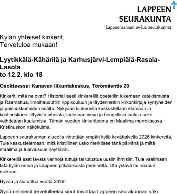 Kinkerit to 12.2. klo 18