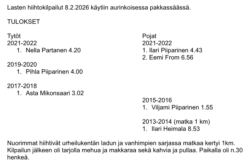 • Lasten hiihtokilpailut 2022