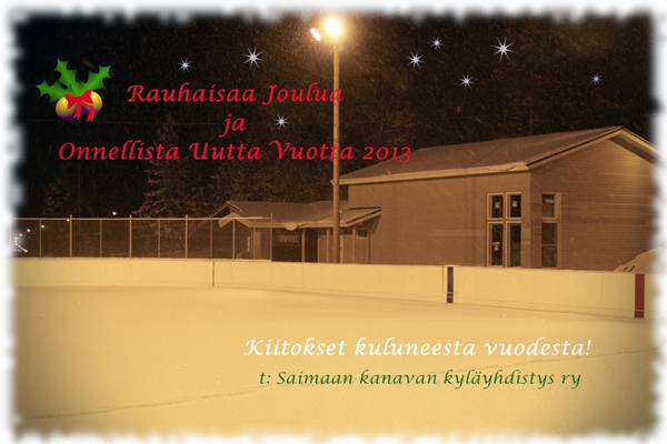 PS. Liikunta/monitoimihallin rakennustalkoot jatkuvat ensi vuoden puolella 7.1.2013 alkaen entiseen aikaan eli maanantai- ja torstai-iltaisin klo 17:00.