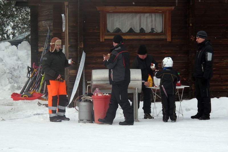 Talkoolaisetkin olivat runsaslukuisesti mukana, vaikka vasta edellisenä iltana oli kylvetty kesäiset talkoohiet pois. Urheilukentän majalle olivat kyläyhdistyksen naiset kattaneet pöydän runsaine antimineen – oli siinä sen seitsemää sorttia. Majan ulkopuolella oli vielä tarjolla kuumaa mehua ja makkaraa.