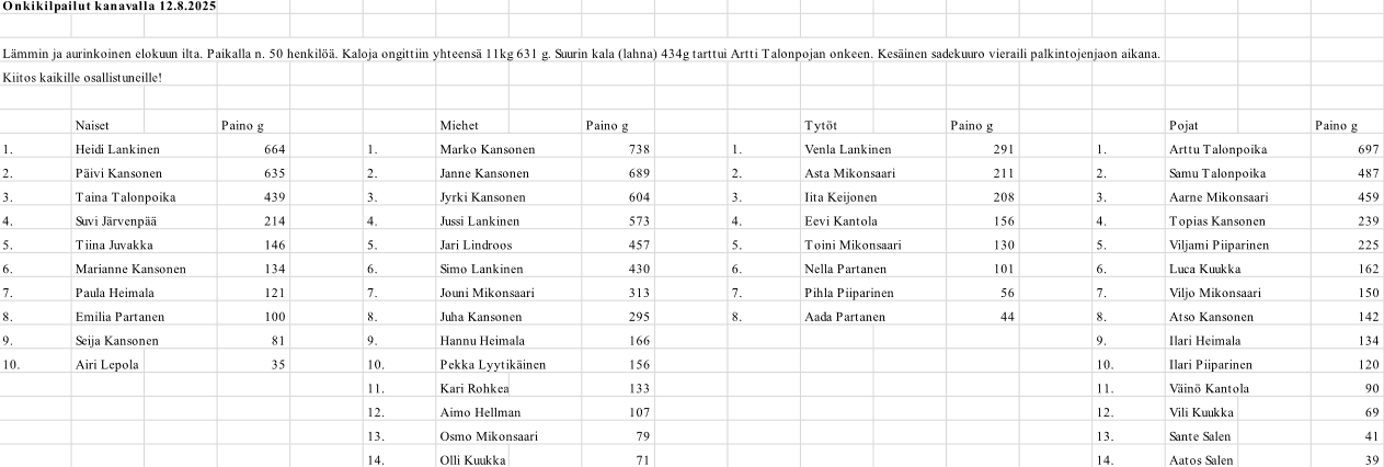 Onkikilpailut tiistaina 12.8. klo 17:30