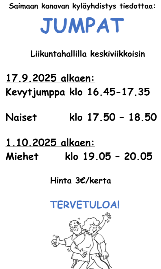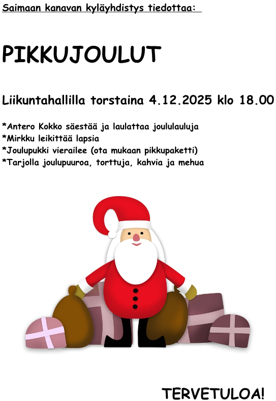 Saimaan Kanavan Kyläyhdistyksen vuosikokous pidetään Lyytikkälän monitoimihallilla, Törömäentie 20, tiistaina 13.1.2026 klo 18:00. Asialistalla sääntömääräiset asiat.
