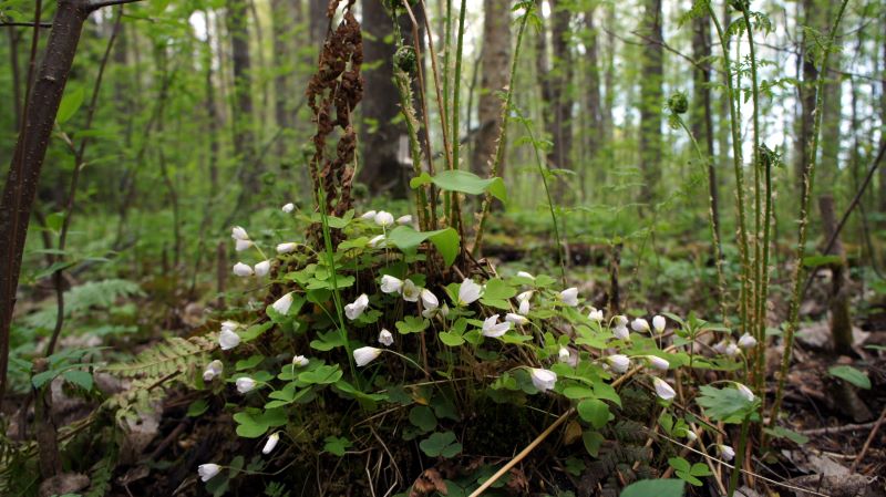 2012-05-22 Tontteja Saimaa näkymin Kaatunut laho koivu webLeppä on muuttunut toukkien suussa arvokkaaksi proteiiniksi tikalle Vaikka kevät onkin ollut kuiva, pohjavesi nousee aivan pintaan kohdatessaan savipakan ja valuu hiljalleen pintakasvillisuuta hivellen kohti Maavettä. Pääpuulaji on koivu, seassa suuria haapoja, jokunen pienehkö kuusi, harmaaleppiä; kuivemmalla maalla monihaaraisia petäjiä, hieman katajaa, pihlajaa ja tuomea sekä erilaisia pensaita. Ketunleipä ehtii kukkia, ennenkuin latvusto vie valon Metsiä on Kaakkois-Suomessa vielä yllin kyllin, mutta tämän metsikön tekee harvinaiseksi se, että se on koivuvaltainen lehtipuulehto ja kaksi vuotta sitten se maanomistajan aloitteesta rauhoitettiin – lintujen pesimäympäristöksi. Samalla lehto hidastaa pinta- ja pohjaveden kulkua matalaan järvialtaaseen. Kansalliskukkamme kielo viehättää sekä muodollaan että tuoksullaan