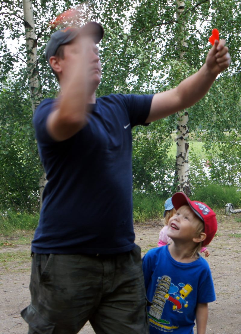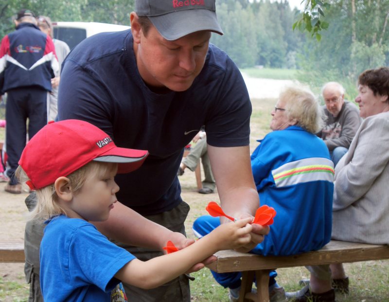 – No, niin, nyt on sinun vuorosi heittää. Otahan ensin tikasta kiinni näin!