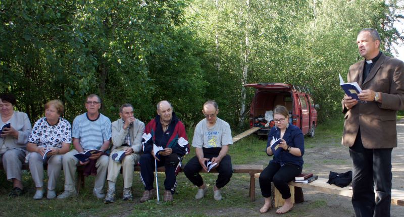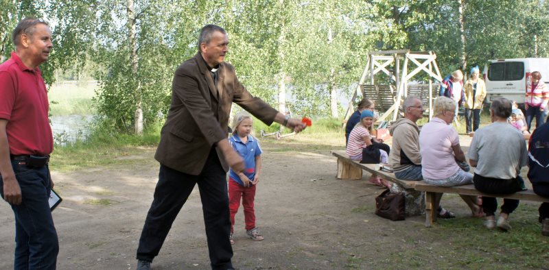 Taipalsaaren kirkkoherra Risto Koskimäki johdatti kesäiltalaiset laulamaan