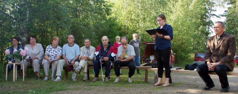 Kesäteologi Miia Nykäsellä on isovanhempiensa kautta juuria myös Leväsen alueelle. Läsnäolijoiden joukossa oli jopa sellaisia, joille Miian sukulaiset olivat olleet tuttuja jo vuosikymmenien ajan. Iltatahartauden aihe oli armon ja rakkauden vieminen arjessa eteenpäin: Varhaisten apostolien, alunperin tavallisten tallaajien, alkuperäinen tehtävä oli olla Jeesuksen kanssa. Jeesuksen seurassa apostoleista kuitenkin myös kehittyi Jumalan sanan lähettiläitä. Keitä nämä apostolit olisivat nykypäivänä? Ovatko apostolit ainoastaan kirkon työntekijöitä?. Ei, vaan apostolinen tehtävä on on periytynyt meille kaikille ja tehtävänämme on viedä eteenpäin sanomaa armosta ja rakkaudesta.