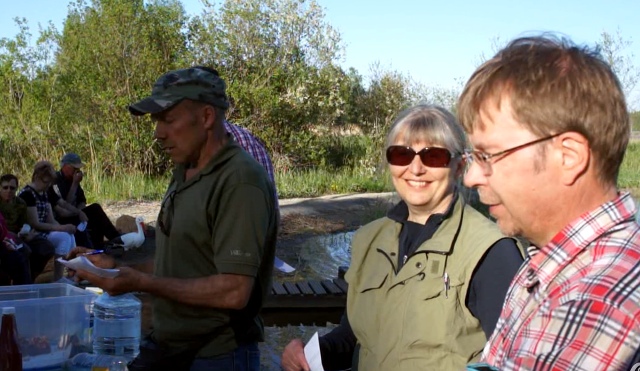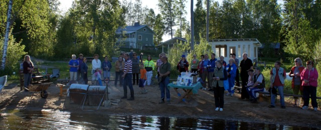 28.5.13 Leväsen Tujulan kosteikon viralliset avajaiset pidettiin leppeässä säässä Pien-Saimaan rannalla Ritva ja Pertti Tujulalla, joiden mailla kosteikkokin sijaitsee. Paikalla oli kymmeniä paikallisia järven rannalla tai sen tuntumassa asuvia. Koeluontoisen panospuhdistamon keksijä Tapio Salminen kertoi aluksi puhdistamon toiminnasta ja kosteikkoasiamies Antti Happonen kosteikon synnystä. Loppuillan ohjelmaosuus olikin sitten aivan Pien-Saimaan rannalla, josta oli hyvä näkymä Leväsen Laitsaaren selälle ja hieman Maavettäkin sillan takana vilkkui. Happonen oli valmistanut juontonsa pohjaksi ajatuksia herättävän kymmenen kysymyksen sarjan vesiasioista. Tarjoussuklaalla palkittiinkin moni oikeasta vastauksesta – tai vaikka hyvästä väärästä. Myös projektisihteeri Raija Aura, Taipalsaaren maaseutuasimies Juha Tielinen sekä Lapppeenrannan seudun ympäristöjohtaja Ilkka Räsänen täydensivät illan tietopuolista antia. Yleisöltä tuli aktiivisesti kysymyksiä ja kommentteja, mutta myös kosteikon rakentamisen alkuvaiheessa tapahtuneen vedennousun synnyttämää kritiikkiä.