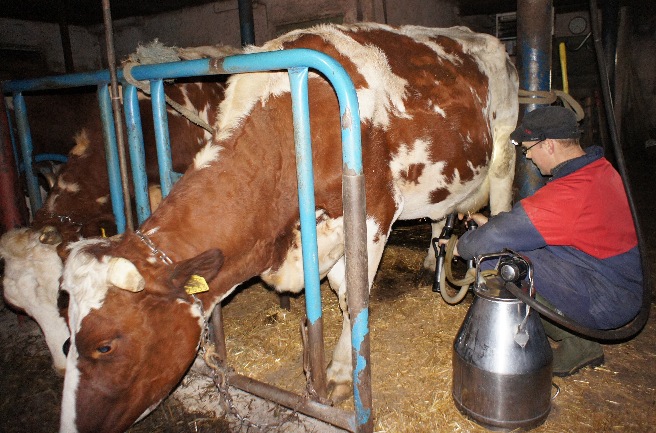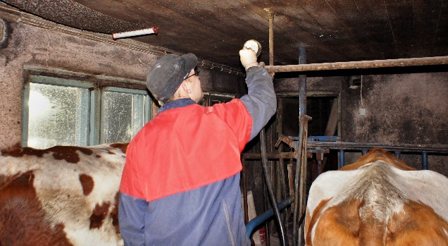 Lehmät olivat tyytyväisiä, kuin aina ennenkin, kun joku lyosää ja ruokkii ne. Onneksi homma toimii näinkin, sillä ihan pelkin käsin ei lehmiä olisi ehtinyt lypsää, toteaa Marko huojentuneena.