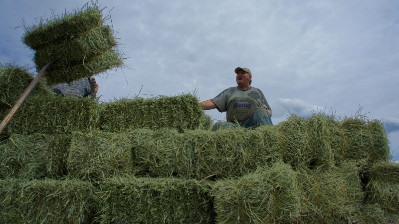 Ja tässähän Atte onkin silmä tarkkana isänsä kanssa paalaamassa
