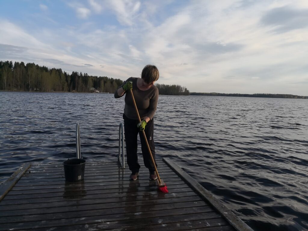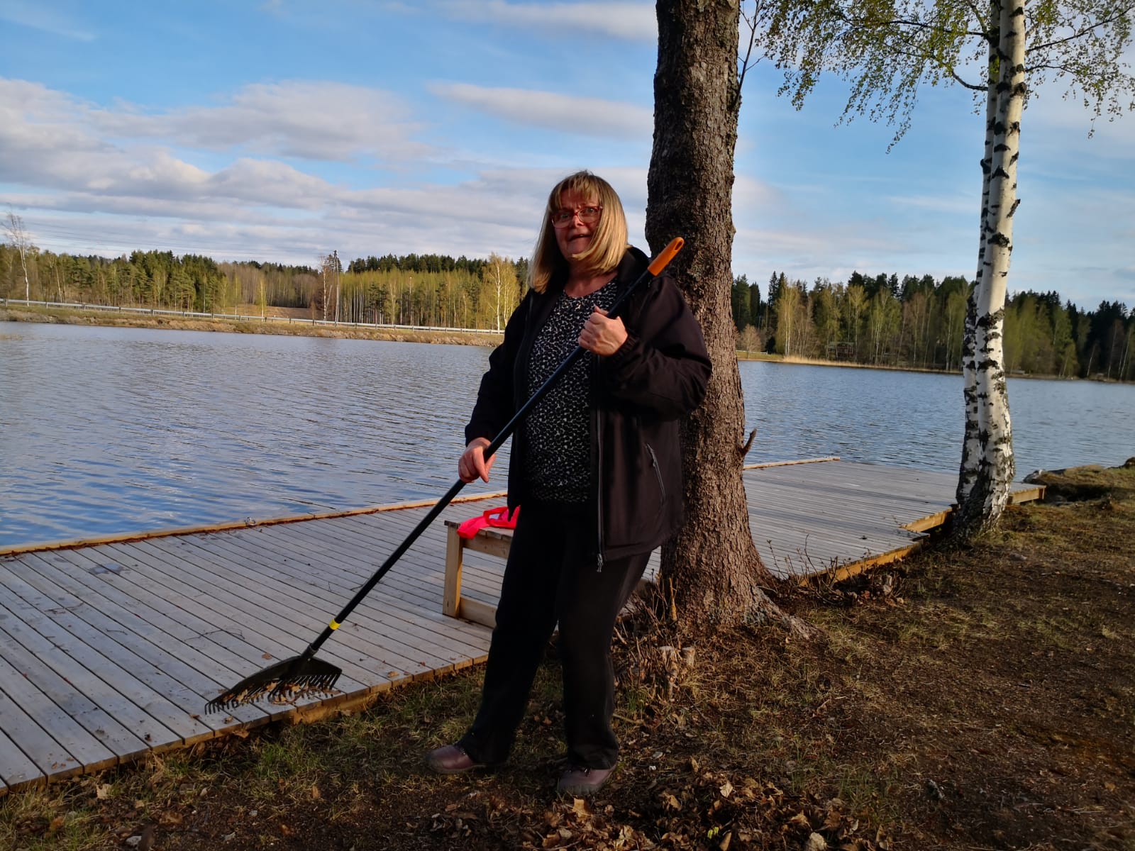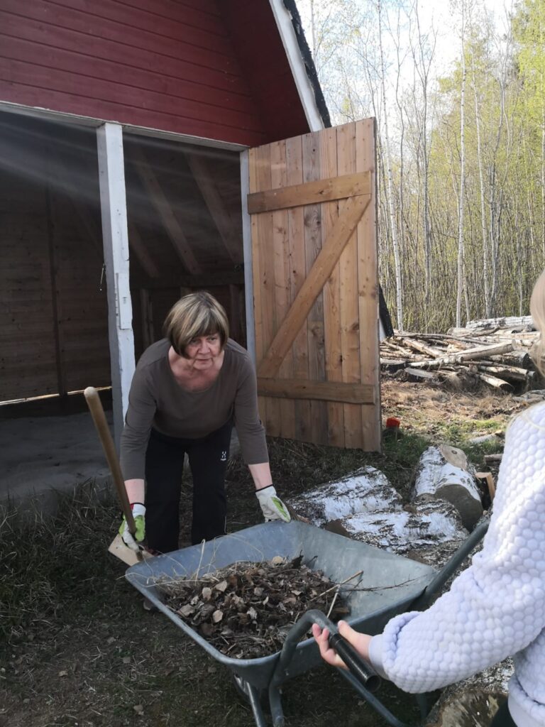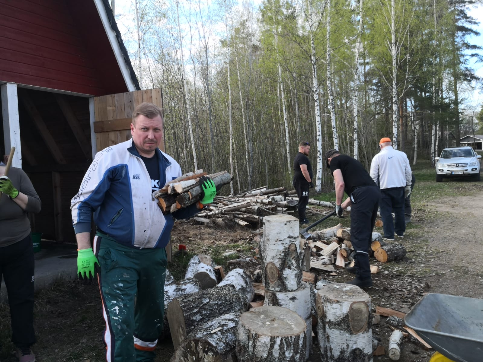 Talkookutsu oli tavoittanut peräti 18 hengen innokkaan porukan kyläyhdistyksen talkoisiin Leväsen rannassa. Haravat heiluivat, moottorisahat soivat, kirveet iskivät kerta toisensa jälkeen välillä tiukkoihinkin pölleihin ja kottikärrein klapit kuljetettiin suojaan pinoon kuivumaan. Taukopaikalla tulen lämpö kuivatti hikisiä talkoolaisia ja paistoi myös makkarat. Taukopaikalla maistui makkara, mehu ja kahvi, ja iloinen puheensorina yhdistyi kevätlintujen lauluun. Yhdistys kiittää kauniisti kaikkia talkoisiin osallistuneita. And a special thanks to Marijke and Nico from Beverwijk Holland for volunteering to join our village team and showing such great enthusiasm yesterday evening. Hope to see you back at Levänen sometime again. (We`ll send you a to-do list in advance …)