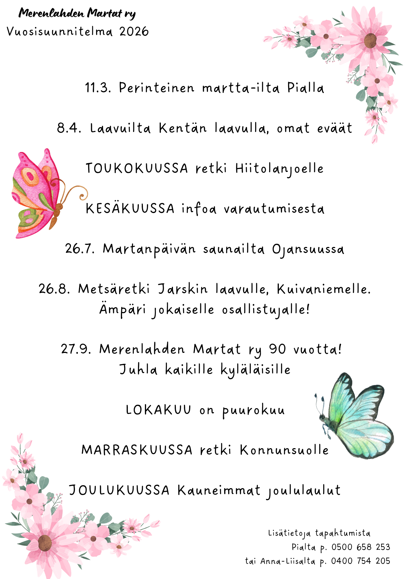 Merenlahden Marttayhdistys ry perustettiin 1936 ja ensimmäisenä puheenjohtajana toimi Lempi Nikkinen. Jäseniä Merenlahden marttayhdistyksessä on tällä hetkellä 36 henkilöä. Yhdistyksen toiminnan runkona ovat jäseniltä nousevat kaikkia lähellä olevat aiheet: ravinto, liikunta, käden taidot, puutarhan hoito. Perinteenä jo pidempään on ollut viettää Martan päivää heinäkuussa saunomisen merkeissä.