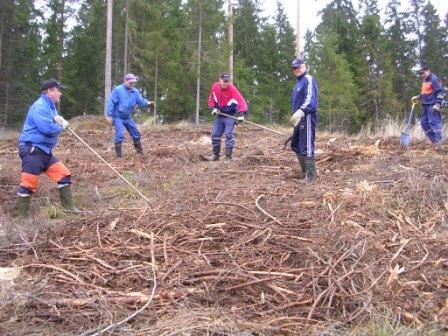 Hakkuun jäljeltä jääneet risut poistettiin talkoilla. Puiden kannot jyrsittiin konevoimalla maan pinnan tasalle
