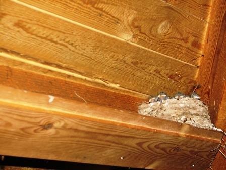 Haarapääskypariskunta Pekka ja Päivi ovat löytäneet kodin Pytingin orrelta. Kuvassa pääskyperheen lapset kesällä 2008