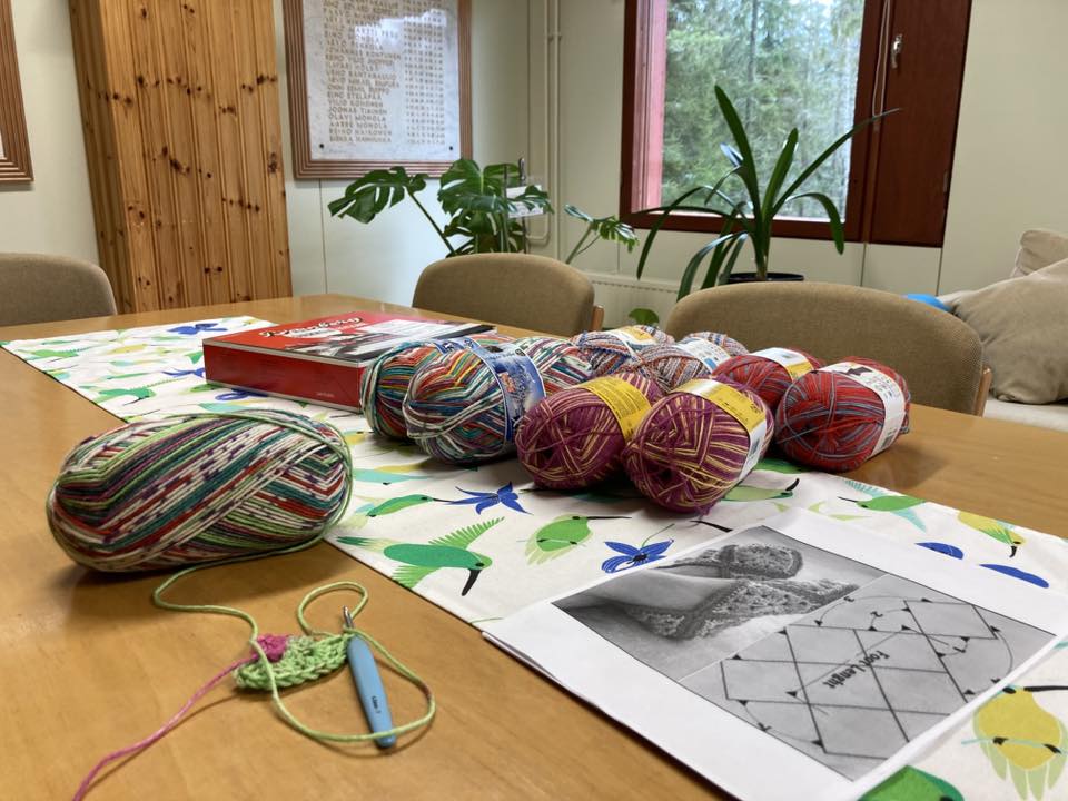Tossutiistai Männistössä 28.10 ja 4.11. klo 10-12. Tehdään sisätossuja pitämään varpaat lämpiminä Männistössä. Mukaan ota omat puikot/koukut, mahdollisesti langanloppuja myös. Karjalan Kangas ja Ompelukone lahjoitti myös ihania raidallisia lankoja tähän hommaan.