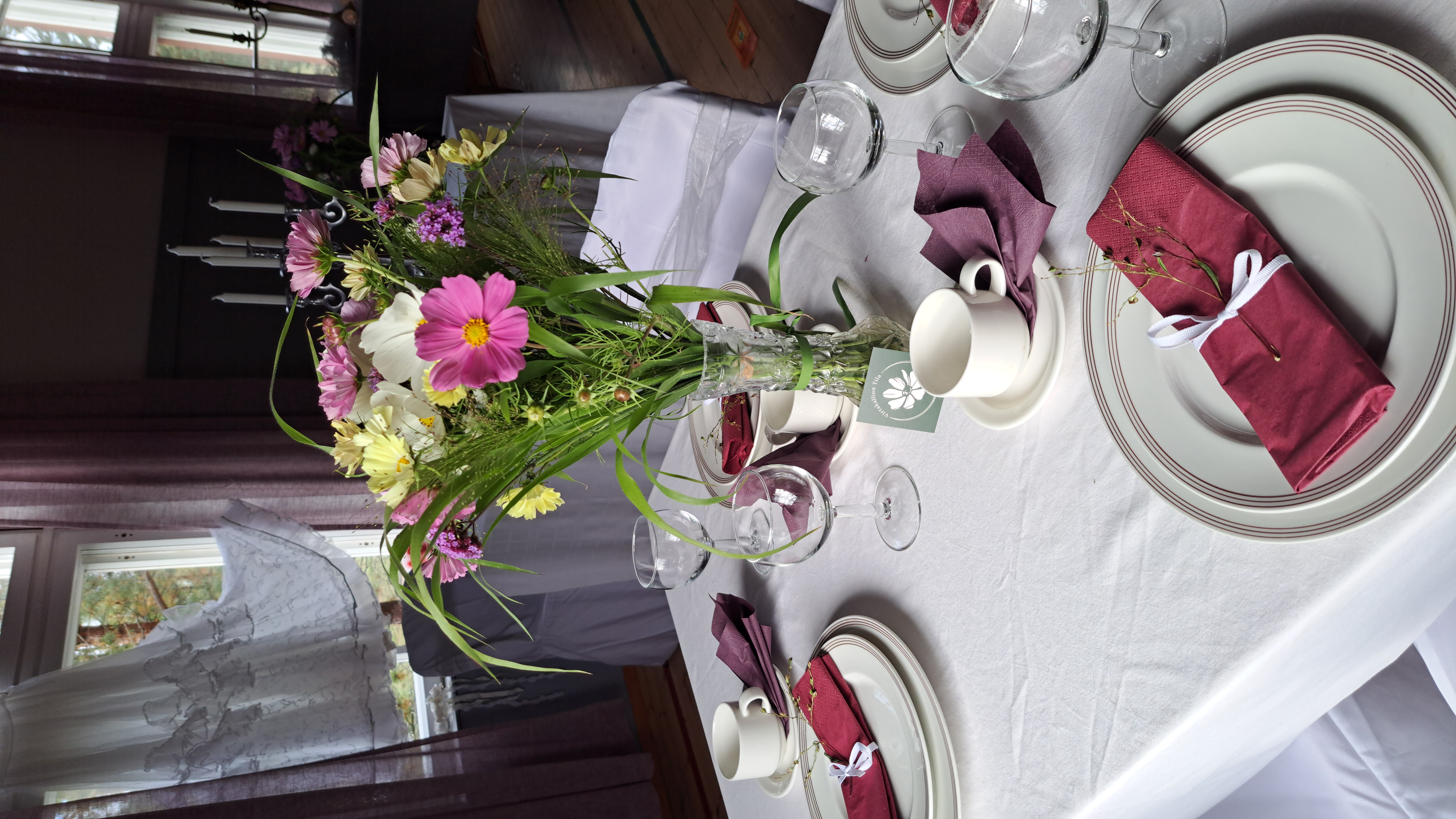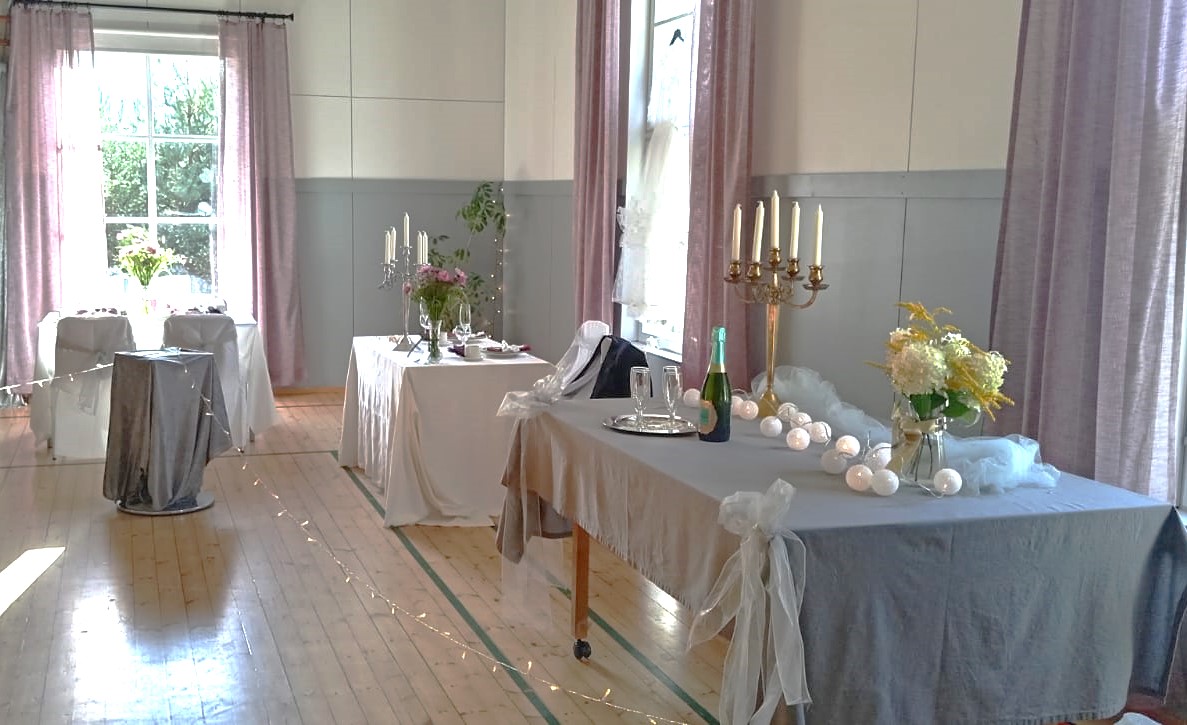 Männistössä oli näytteillä erilaisia hääkattauksia, joista voimme ottaa inspiraatiota tuleviin juhliimme. Näimme konkreettisesti sen, miltä Männistön voi saada näyttämään! Kukat meille toimitti Virtakallion tila.