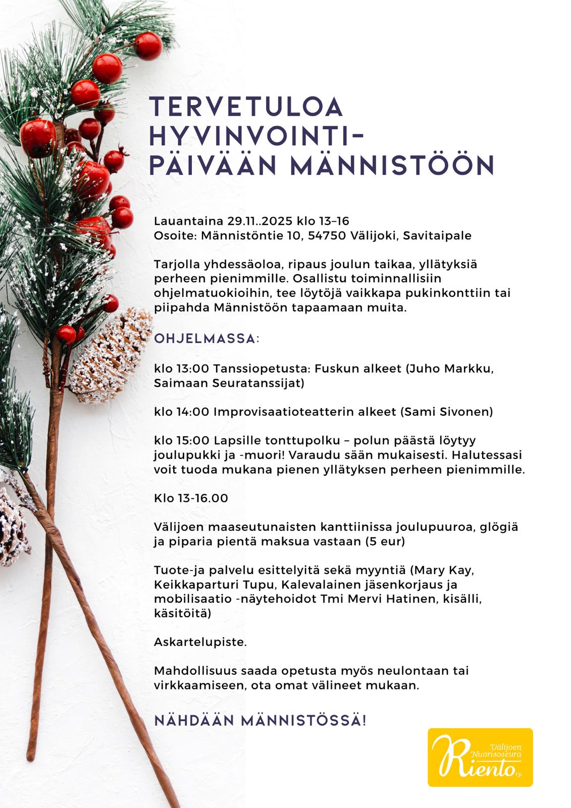 Tervetuloa Männistöön pe 3.10.2025 klo 18!