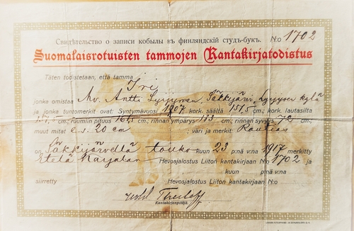 Antti sai ensimmäiseksi ajohevosekseen Visu -nimisen tamman, joka oli Vilkjärven kylän ensimmäinen kantakirjatamma ja kylän paras vetohevonen. Visulla Antti ajoi muutaman talven rahtia. Varsaa veljekset eivät Visusta saaneet ja siksi heidän mielensä alkoi tehdä kookkaampaa ja hyväkulkuista siitostammaa. Syyskesällä 1919 Juho sai ostettua naapuripitäjästä Säkkijärveltä hyvän kantakirjatamman. Tämän Iri -tamman kantakirjatodistus löytyi myös lipaston laatikosta. Nämä kaksi tammaa tuntuvat olleen Antille erityisen tärkeitä hevosia.